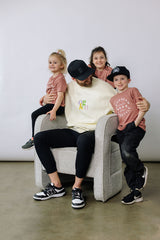 Originally released in cream and pastels, the Jess Crew returns this winter in timeless black, with lettering in grounding nature-inspired hues and joy-bringing bright tones.